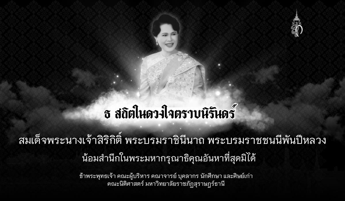 คณะนิติศาสตร์ มหาวิทยาลัยราชภัฏสุราษฎร์ธานี ขอแสดงความยินดีแก่ ผู้ช่วยศาสตราจารย์ธัญญาภัส ทองมุสิทธ์ และผู้ช่วยศาสตราจารย์พงศกร ถิ่นเขาต่อ สังกัด คณะนิติศาสตร์ มหาวิทยาลัยราชภัฏสุราษฎร์ธานี ที่ได้รับการแต่งตั้งจากสภามหาวิทยาลัยให้ดำรงตำแหน่ง ผู้ช่วยศาสตราจารย์ ตามมติสภามหาวิทยาลัย