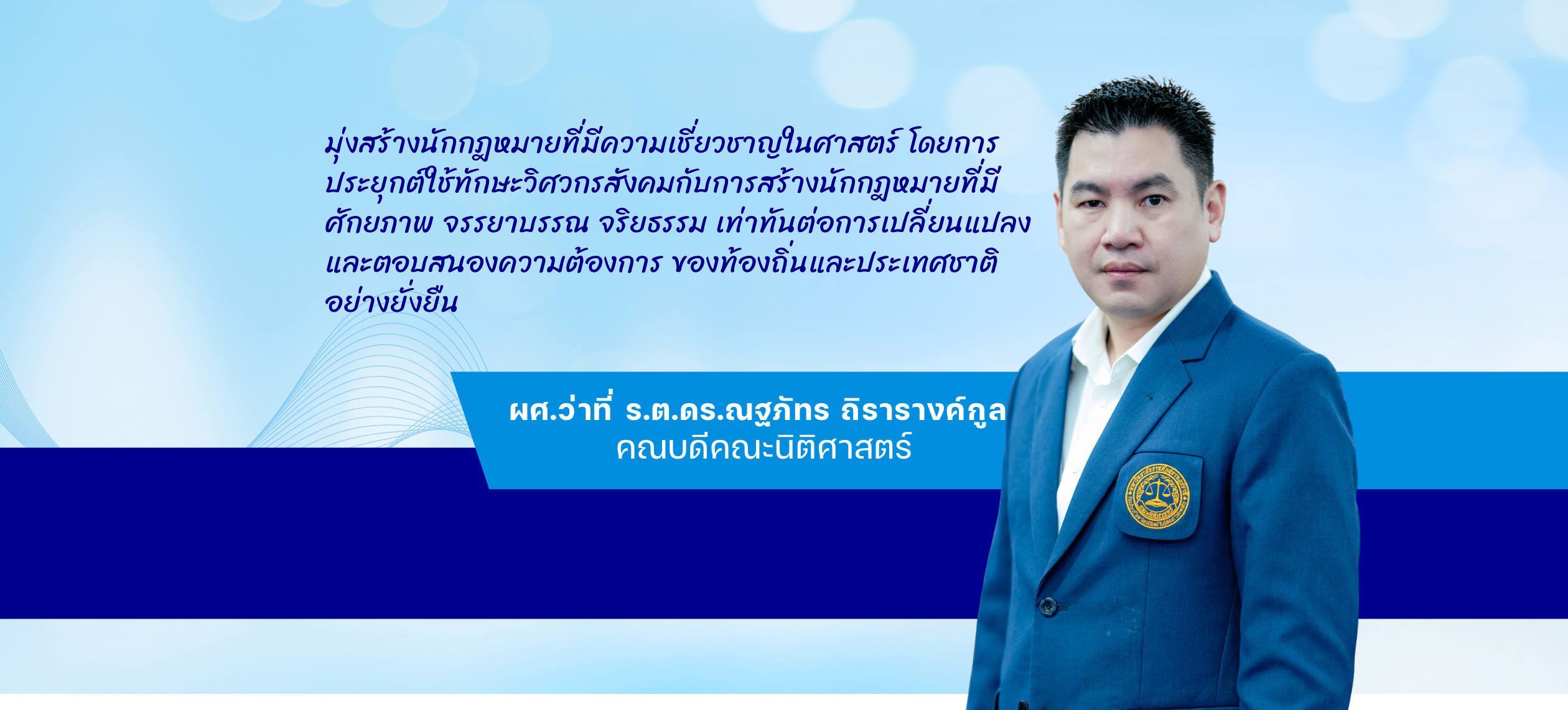 มุ่งสร้างนักกฎหมายที่มีความเชี่ยวชาญในศาสตร์ โดยการประยุกต์ใช้ทักษะวิศวกรสังคมกับการสร้างนัก กฎหมายที่มีศักยภาพ จรรยาบรรณ จริยธรรม เท่าทันต่อการเปลี่ยนแปลงและตอบสนองความต้องการ ของท้องถิ่นและประเทศชาติอย่างยั่งยืน